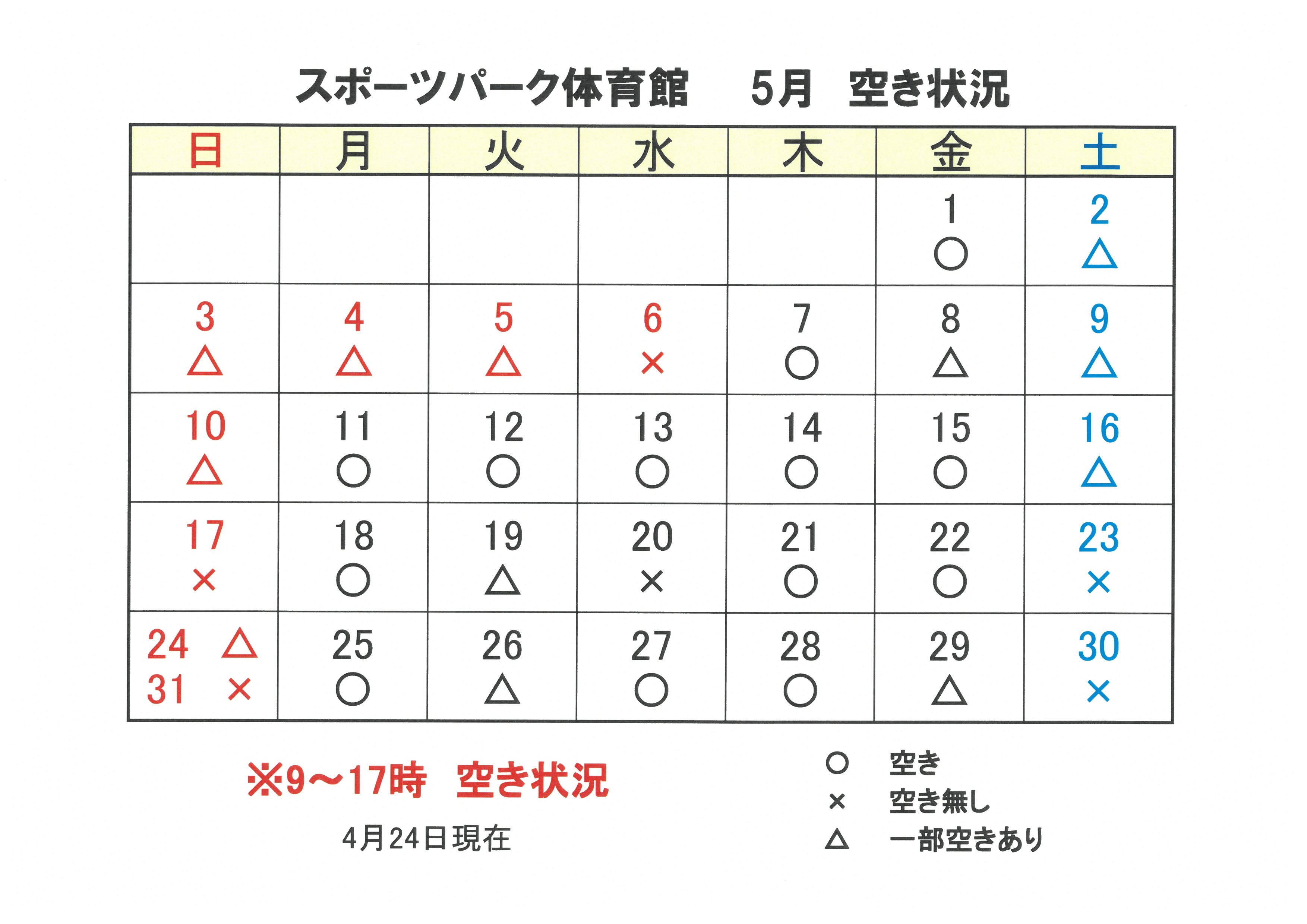 - 4月磐梯熱海スポーツパーク体育館・多目的グランドの空き状況