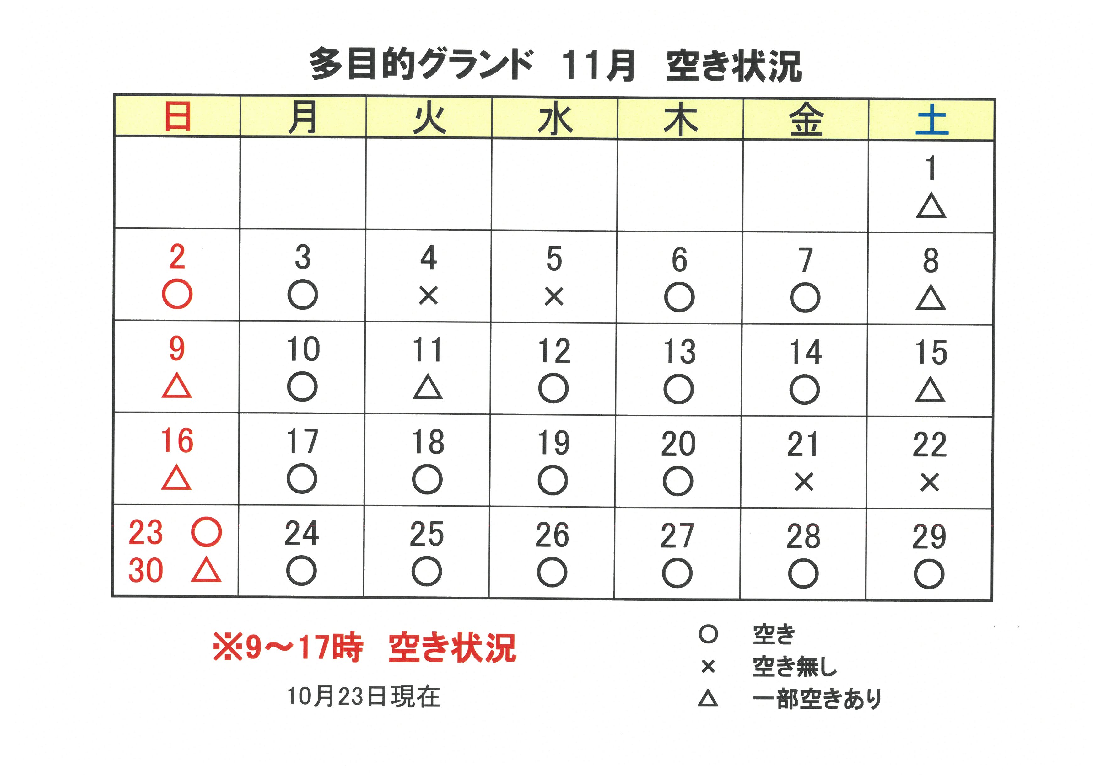 11月磐梯熱海スポーツパーク体育館・多目的グランドの空き状況