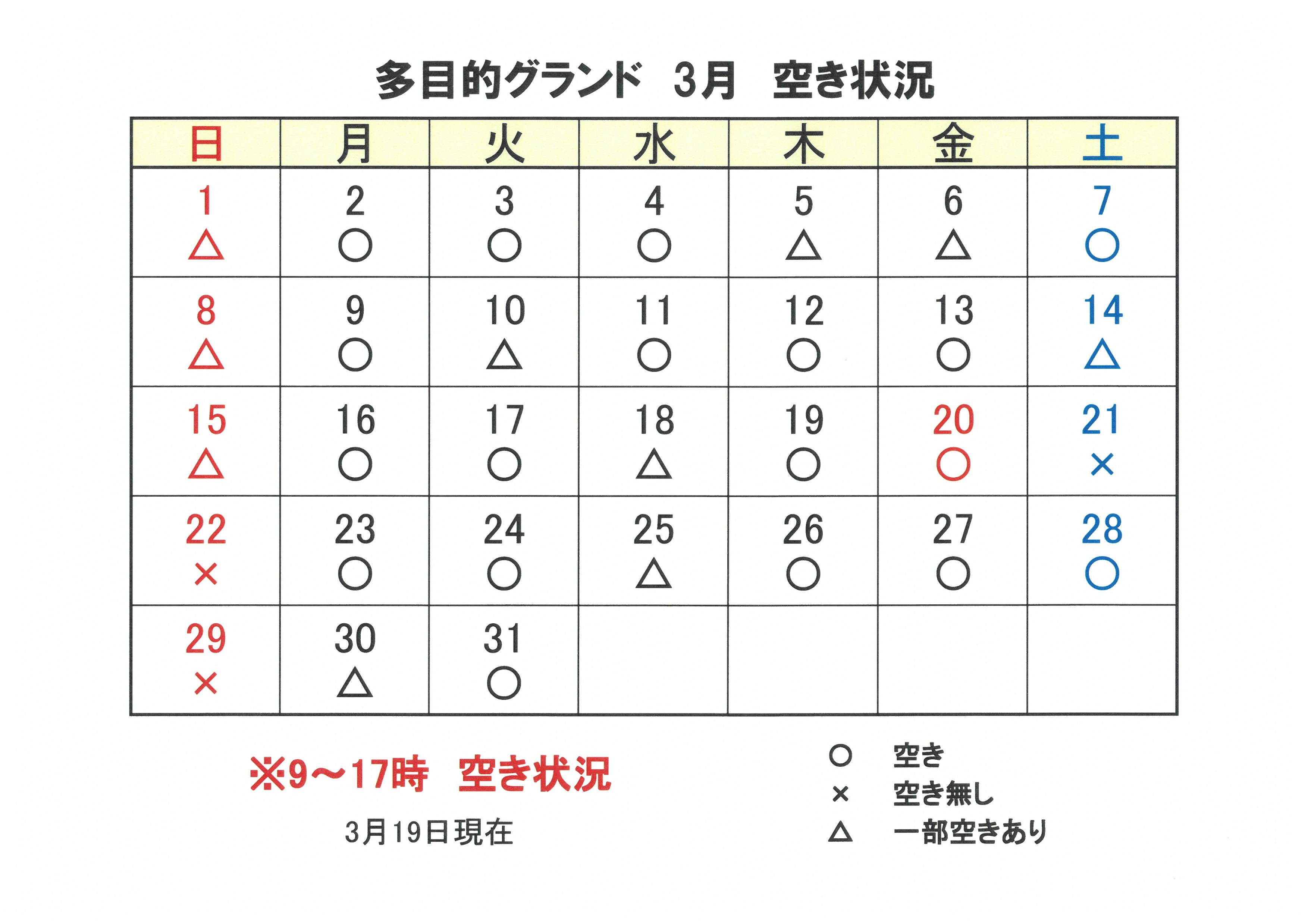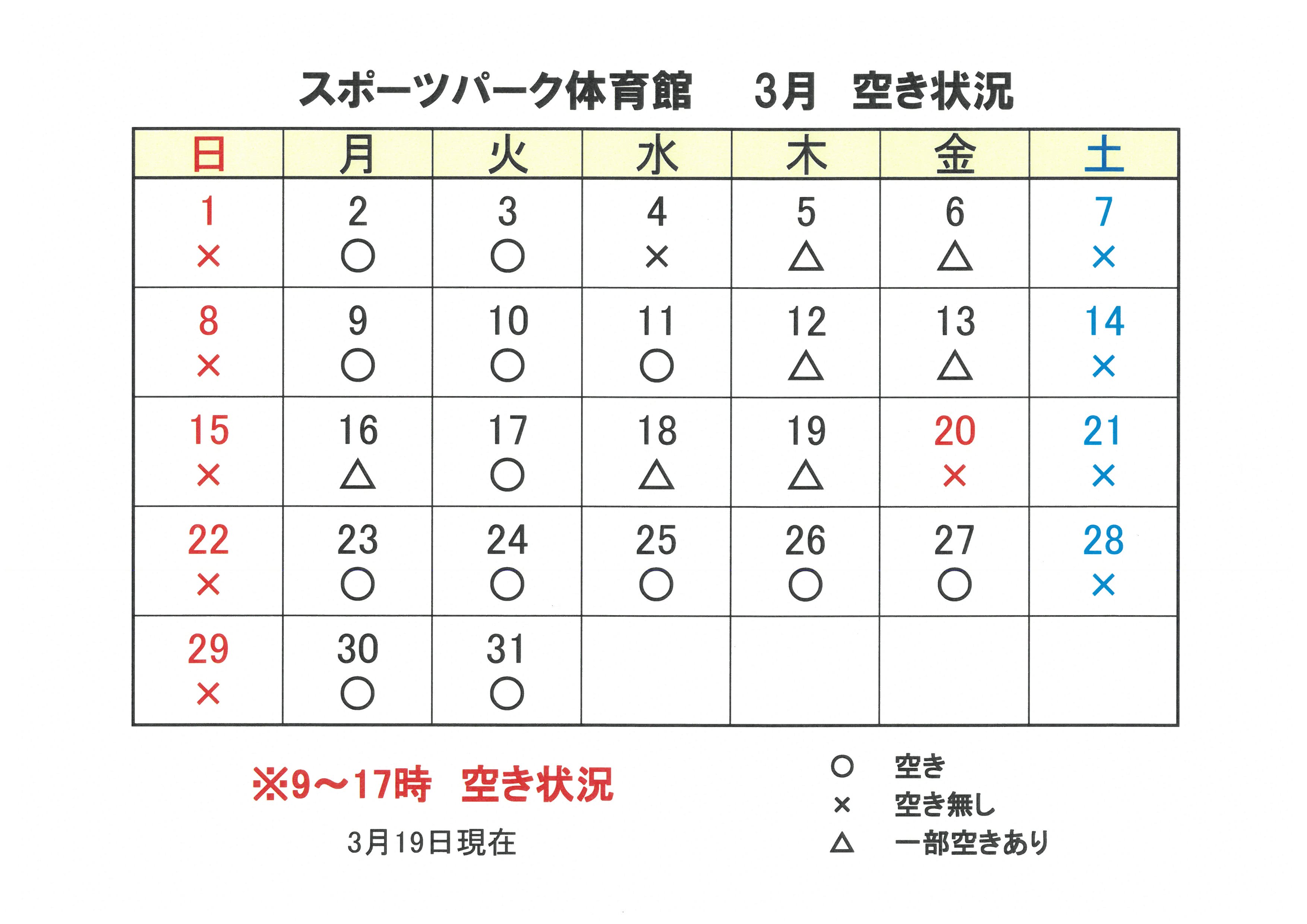 トップページ > お知らせ > 3月 磐梯熱海スポーツパーク体育館・多目的グランドの空き状況
